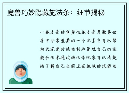 背景介绍 魔兽世界是一款备受欢迎的在线角色扮演游戏,玩家可以在游戏中扮演不同种族的角色,进行冒险和战斗。在游戏中,每个角色都拥有各种技能,这些技能通常会显示在角色的技能图标上。有时候玩家可能希望将这些...