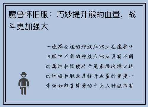 魔兽没充值如何看账号角色等级高低 在魔兽世界这款游戏中,角色等级是衡量一个玩家实力的重要指标。对于一些没有充值的玩家来说,如何判断账号角色的等级高低是一个关键问题。本文将从多个方面进行详细阐述,帮助玩...